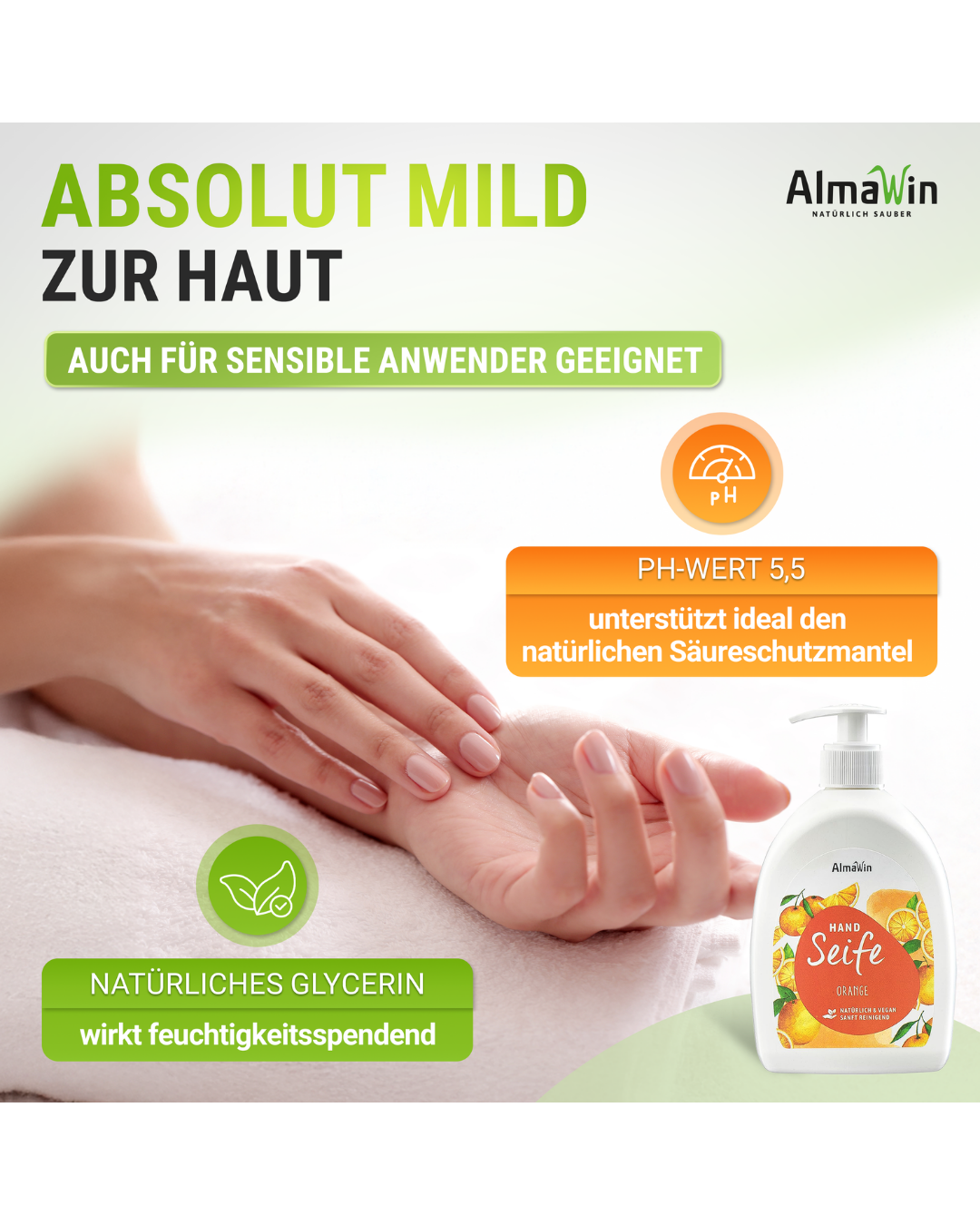 Fragen & Antworten zum AlmaWin Flüssigseife Orange, 0,5 Liter