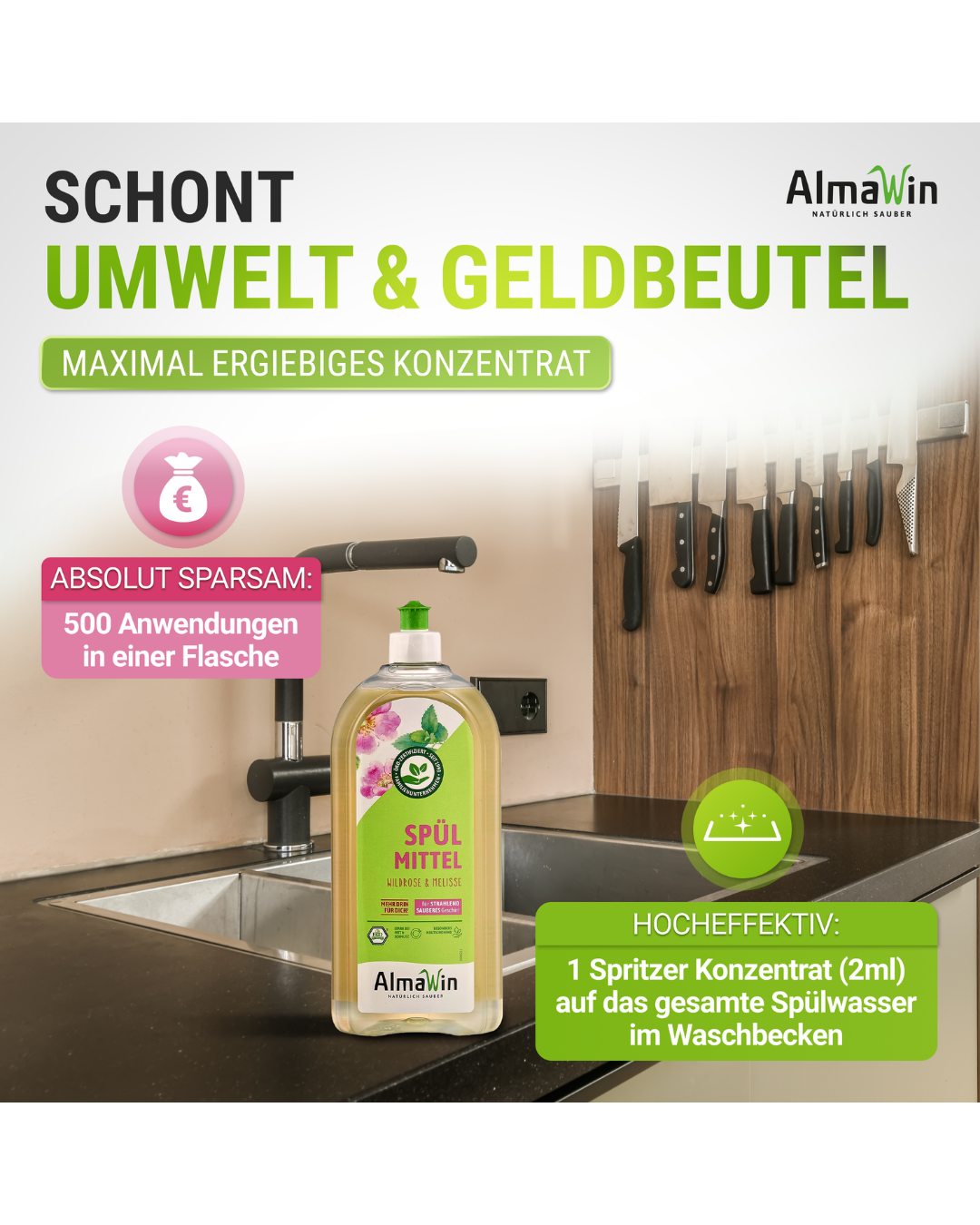 AlmaWin Spülmittel Wildrose Melisse Produktdetails