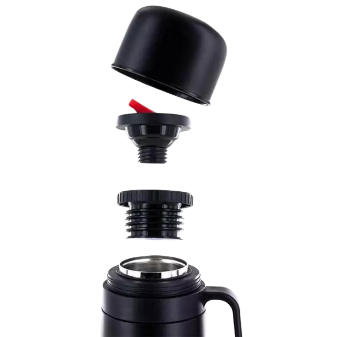 - Mattschwarze Thermoskanne aus rostfreiem Stahl