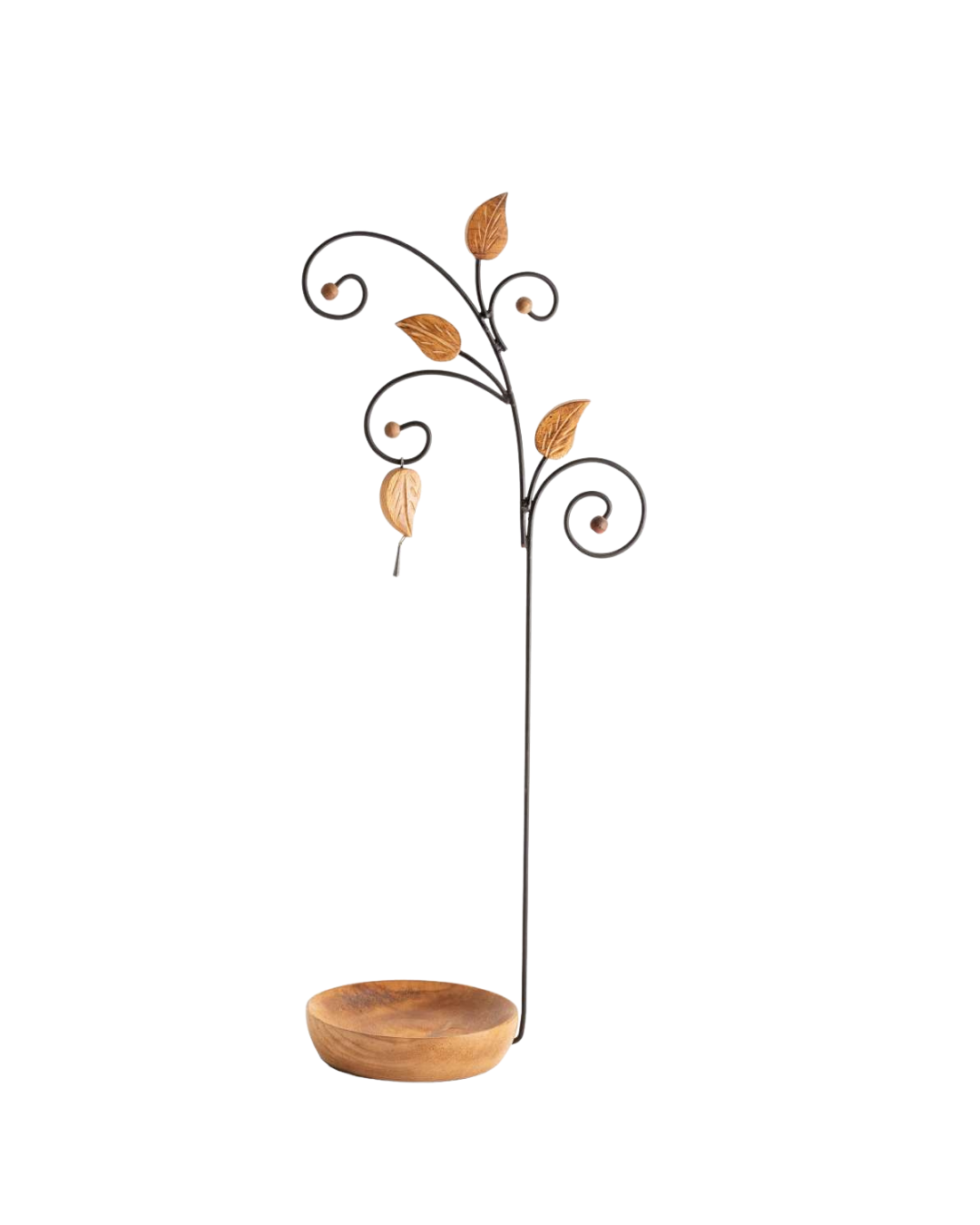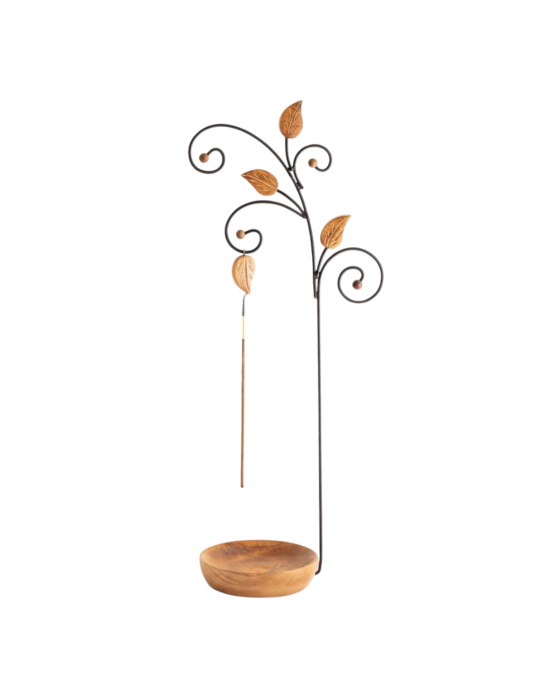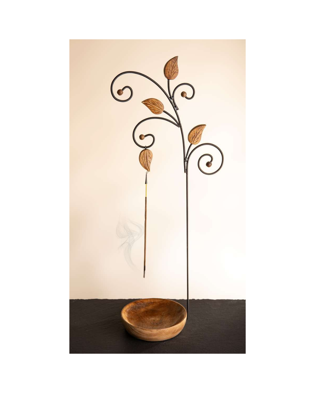- Elfenwald Räucherhalter: Zauberhaft filigranes Design aus Mangoholz und Metall. Das kopfüber hängende Stäbchen erzeugt einen mystischen Nebelschleier. H 49 cm, B 19,5 cm.