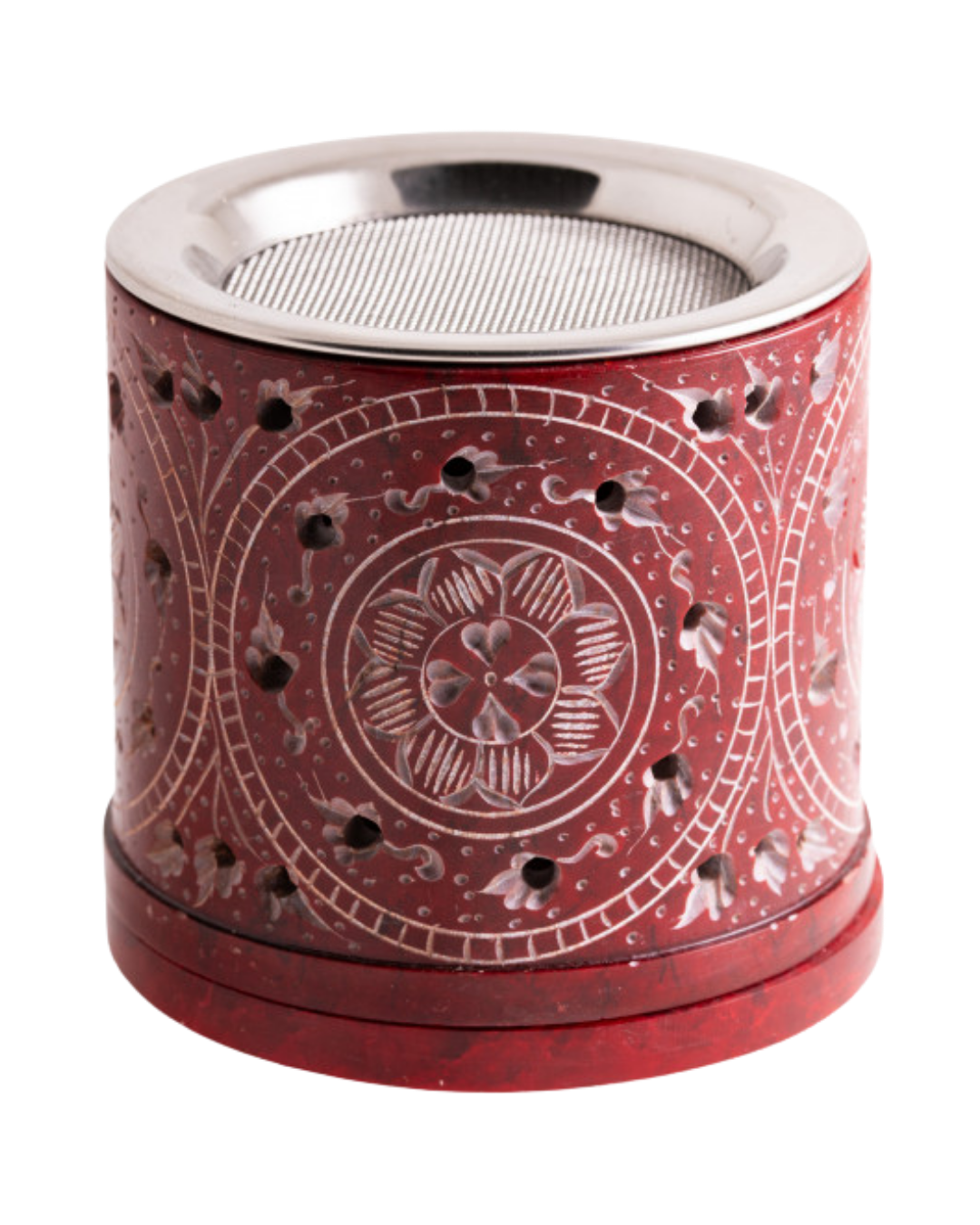 - Siebgefäß "Gita" aus Speckstein - handgeschnitzt im alt-orientalischen indischen Stil. Dekoratives Accessoire (H 8 cm, Ø 8,5 cm) mit Filzgleitern zum Möbelschutz.