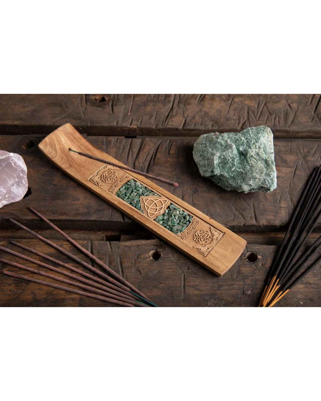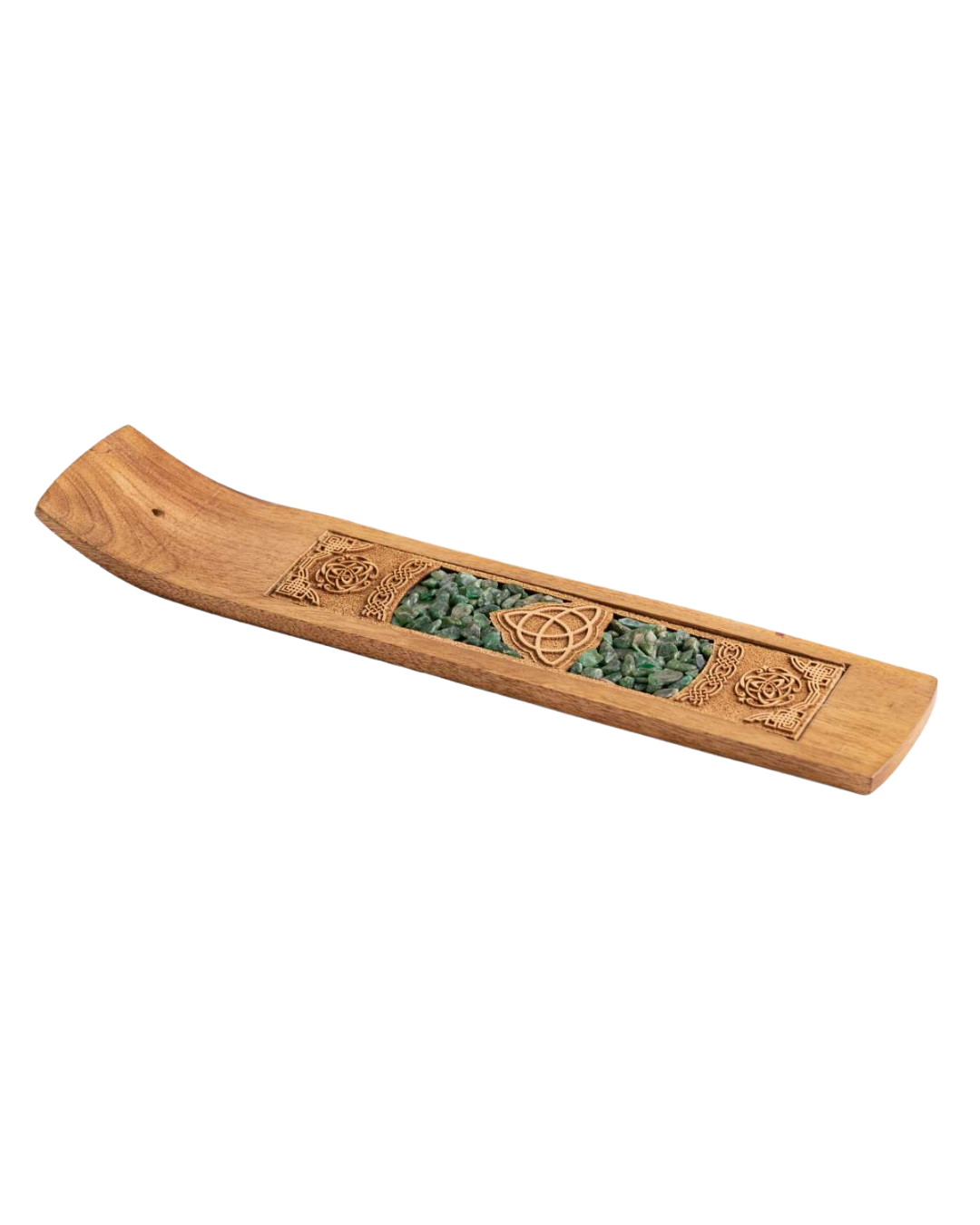 - Keltischer Knoten Räucherhalter aus Akazienholz mit echtem Aventurin. Feine Gravuren und edles Design - ideal für spirituelle Rituale und stimmungsvolles Räuchern.