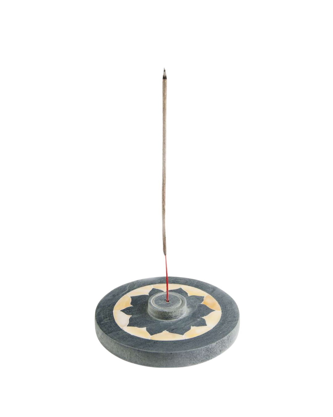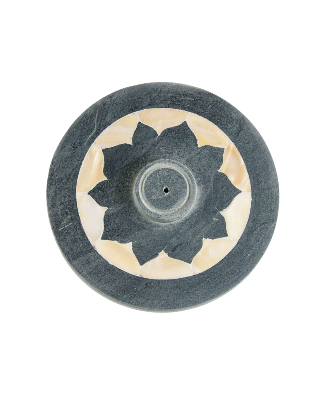 Lotus mit Perlmutteinlage - Specksteinhalter ist eine elegante Verbindung aus Naturmaterialien. Der Halter aus Speckstein trägt eine zarte Perlmutteinlage und bietet eine stabile, hitzebeständige Basis für Räucherstäbchen. Mit Ø ca. 10 cm dient er als dezenter Blickfang in Wohnzimmer, Meditations- oder Schlafbereich. Die perlmuttschimmernde Inlay verleiht dem Design eine feine Note und macht das Ritual-Setting stilvoll und zeitlos. Robuste Verarbeitung, handgefertigt, macht ihn langlebig und passend für jedes Ambiente.