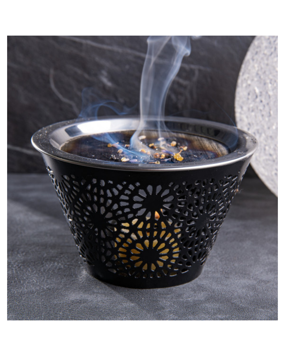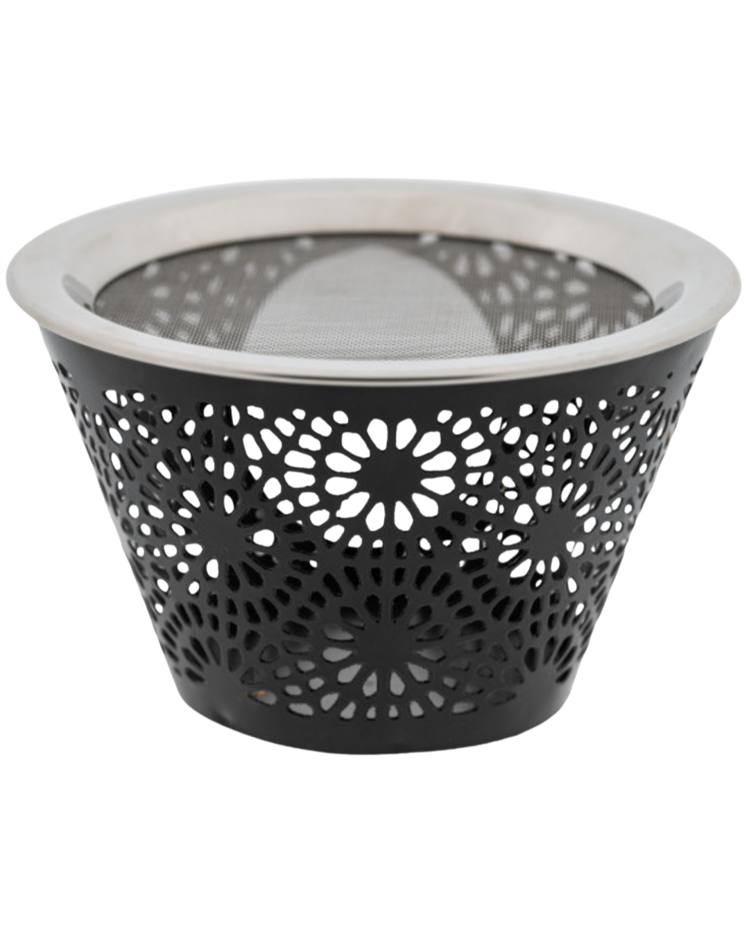 - Siebgefäß Gesa im orientalischen Ornament-Design. Pulverbeschichtetes Eisen mit großem 12,5 cm Edelstahlsieb - dekorativ, robust und ideal zum Sieben von Tee, Gewürzen und Mehl.