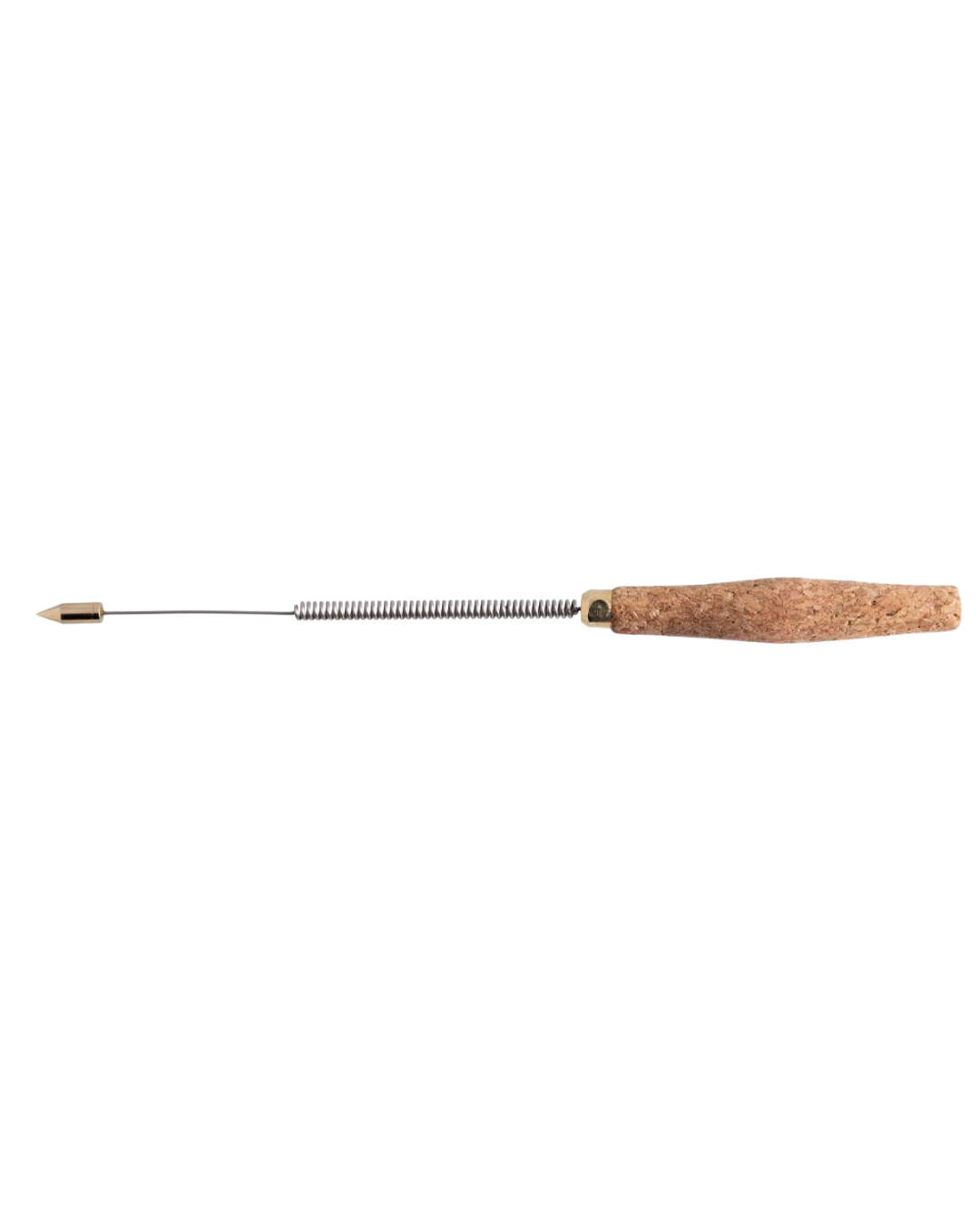 - Handlicher Spirello mit Korkgriff, spiralförmigem Stahlstab zur Verstärkung, Messingspitze und verstellbarer Messingschraube. Ausziehbar 28-35 cm. Lieferung in schöner Geschenkbox.