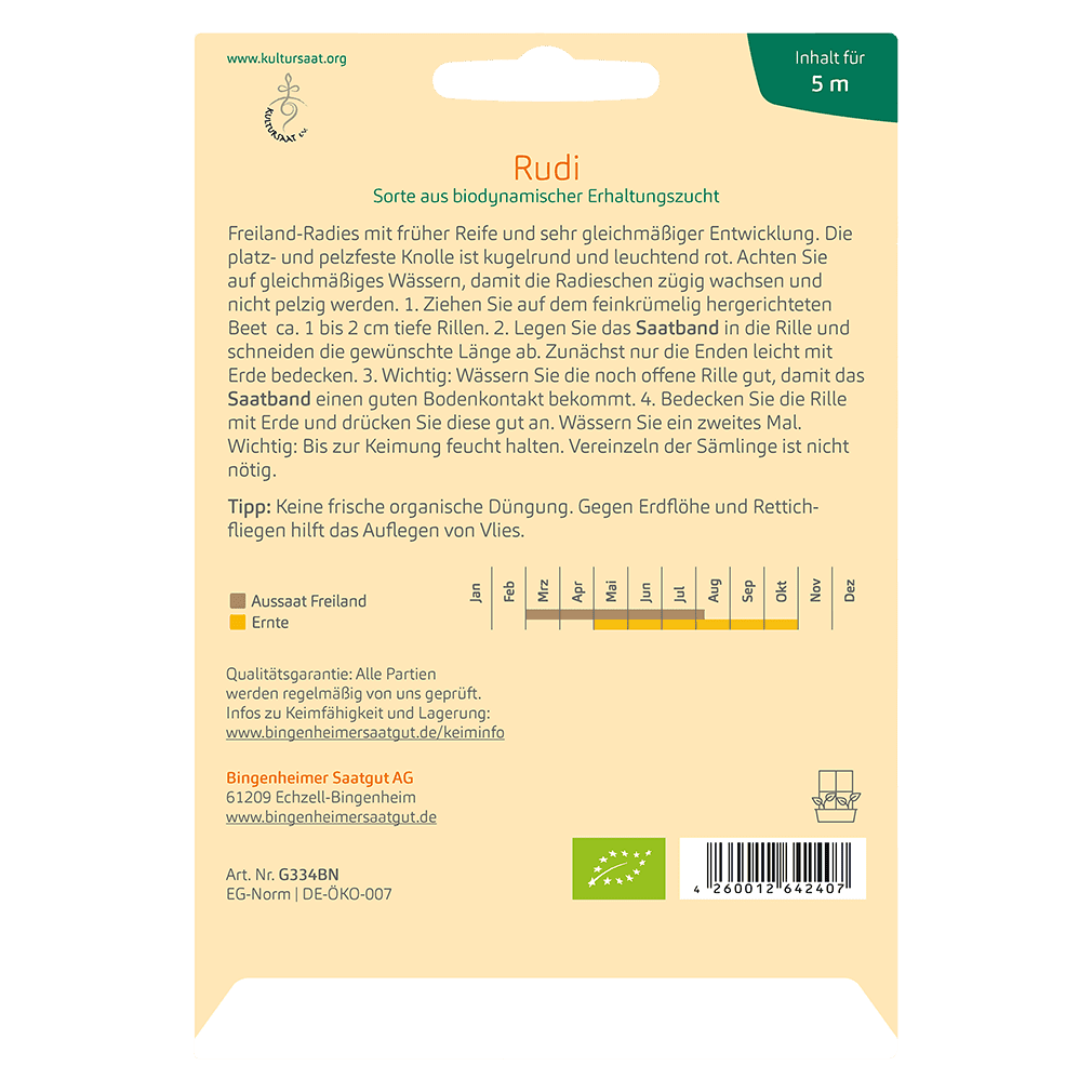 Bingenheimer Saatgut Bio Radies Rudi, GS Saatband Produktdetails