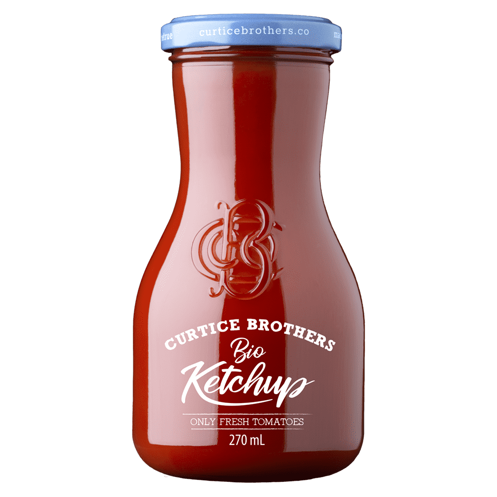 Eines ist unser Ketchup ganz sicher nicht: ein Triumph der modernen Lebensmitteltechnologie. Denn es besteht, ganz traditionell, aus frischen Bio-Tomaten, die gemeinsam mit Äpfeln und Zwiebeln und etwas Essig so schonend gekocht werden, dass ihr Aroma nicht verloren geht. Deshalb kommt unser Rezept auch mit wesentlich weniger Salz und Zucker aus, als man eigentlich für ein schmackhaftes Ketchup benötigt. Liebe und viel Geduld. So wurde früher gekocht und wir denken, so war es einfach gut. Deshalb haben wir den Curtice Brothers Bio Ketchup zu neuem Leben erweckt; ein Ketchup aus einer Zeit, in der es noch kein Tomatenkonzentrat gab und nur frische Zutaten zählten. Curtice Brothers. Nur frische Tomaten.Die leuchtend rote Farbe und der fruchtige Geschmack haben auch die Experten beim Great Taste Award überzeugt – und das gleich mehrmals.