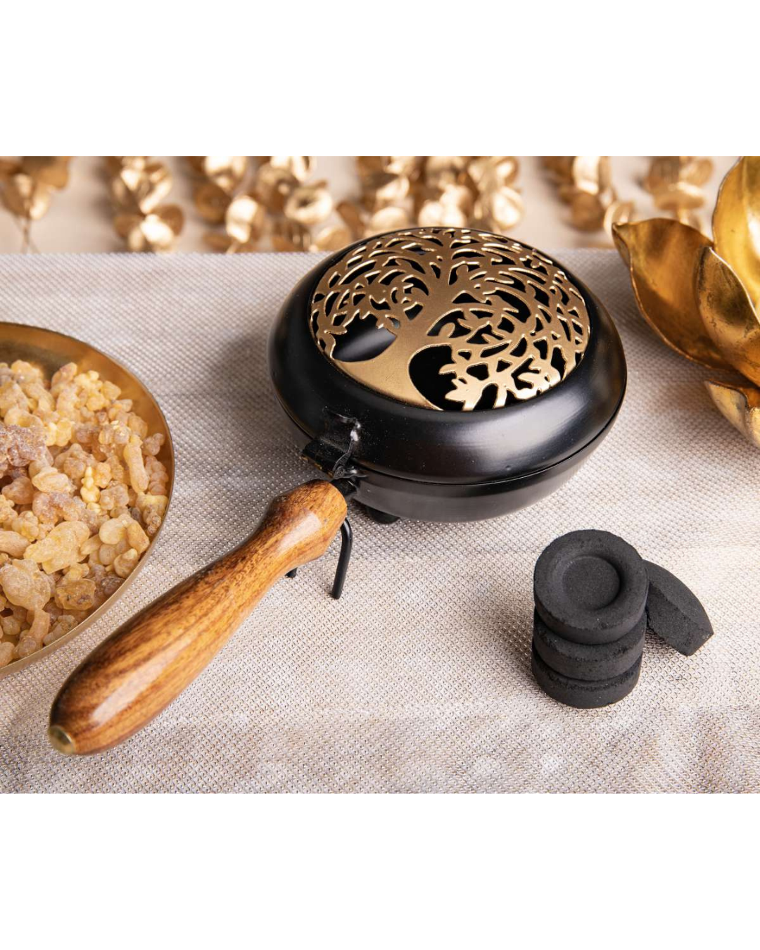- Tragegefäß Yggdrasil - robustes Eisen mit ergonomischem Holzgriff. Ø 11,5 cm, L 23 cm. Symbolisches Schutzbaum-Design, ideal als dekoratives und praktisches Gefäß.