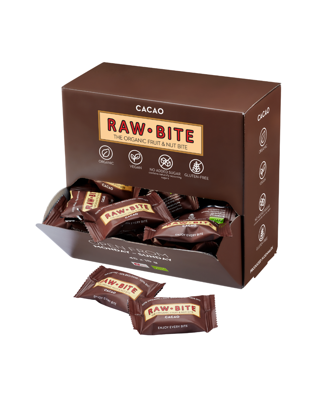 Rawbite steht seit Jahren für klare Rezepturen mit wenigen ausgewählten Zutaten. Das dänische Unternehmen verbindet unkomplizierte Snack-Ideen mit modernem Design und einem Fokus auf natürliche Rezepturen in Bio-Qualität.