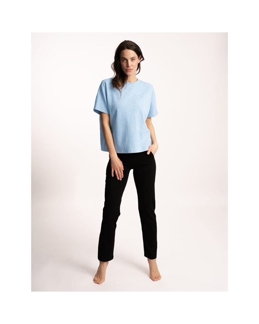 Ob beim Spaziergang, im Home Office, beim Yoga oder im Büro – dieses Modell passt sich mühelos verschiedenen Situationen an. In den Farben Tiefsee oder Schwarz lässt sich die Hose unkompliziert mit Shirts, Strick oder leichten Oberteilen kombinieren.
