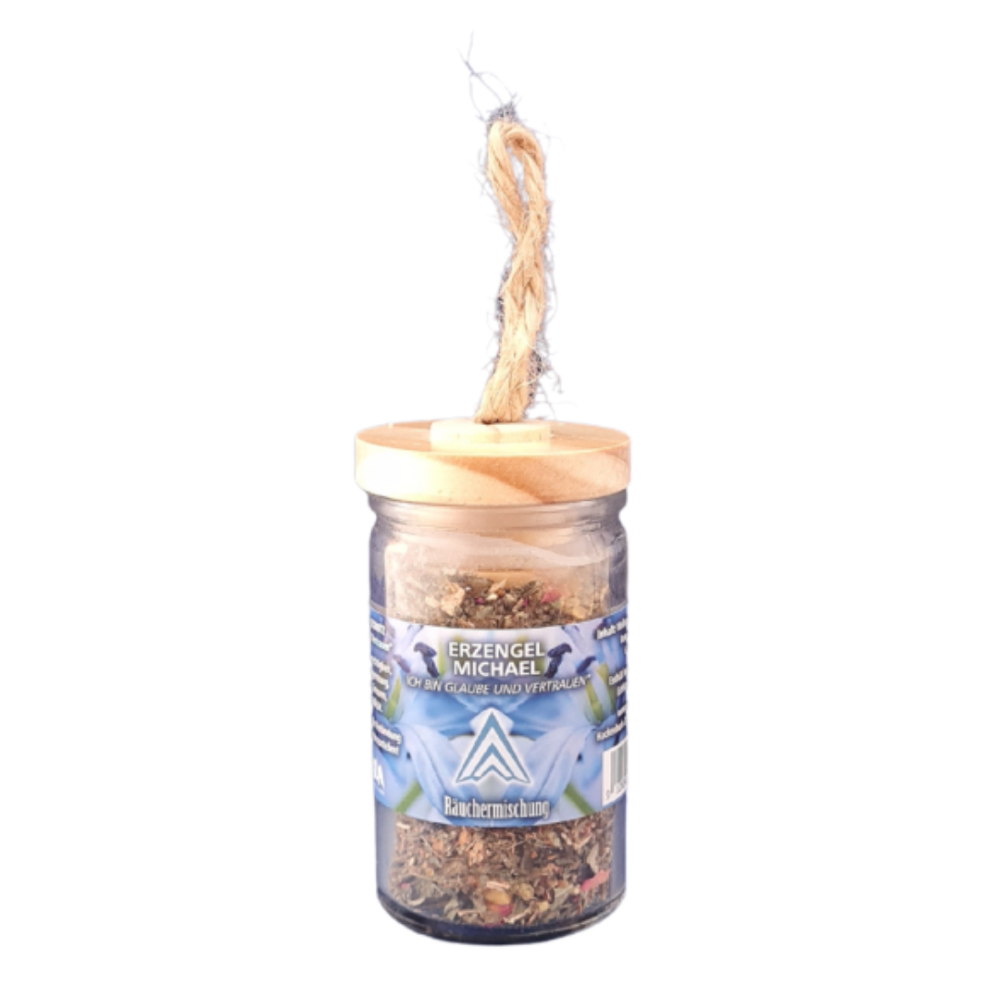 Die Räuchermischung MICHAEL vereint traditionelle Harze, Kräuter und Blüten zu einem Duft, der Stabilität, Schutz und innere Klarheit ausstrahlt. Der harmonische Duft öffnet Räume für Besinnung, konstruktive Entscheidungen und die Befreiung von alten Mustern.
