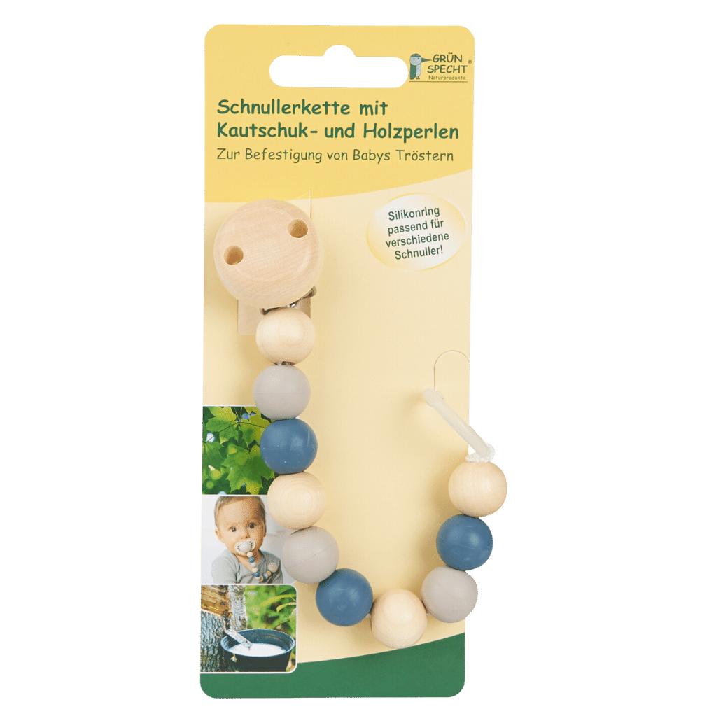 Schnullerkette mit Kautschuk und Holzperlen Winter