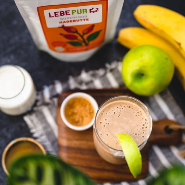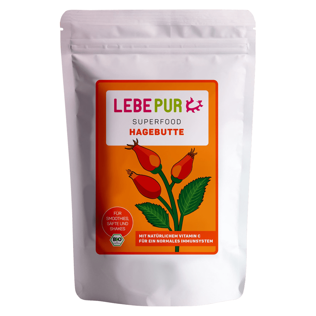 Die Hagebutte ist sehr bekannt. Kinder kennen ihr Pulver vor allem unter dem Namen Juckpulver. Doch was viele nicht wissen: Die Hagebutte eignet sich auch sehr gut als Lebensmittel. Vermahlen in Pulverform kann man das Lebepur Hagebuttenpulver ganz einfach bei einer Vielzahl von Rezepten verwenden. Beliebt ist das Hagebuttenpulver vor allem in Smoothies.