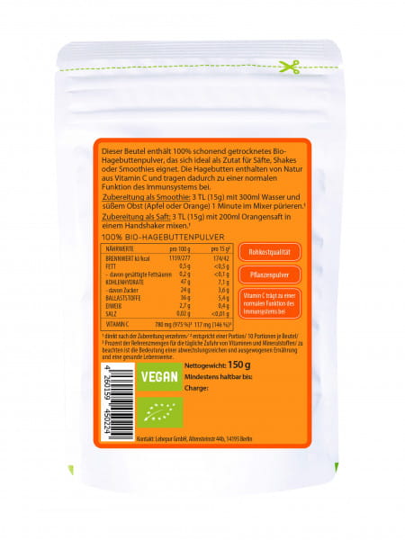 Lebepur Bio Hagebutten Pulver Produktdetails