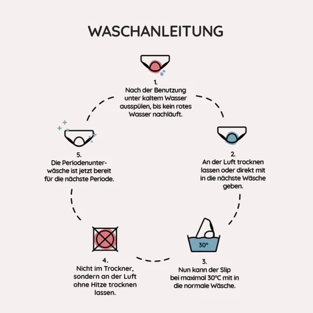 - Deine MYLILY Periodenunterwäsche braucht liebevolle Pflege, damit das innovative Gewebe dir tatkräftig zur Seite stehen kann.