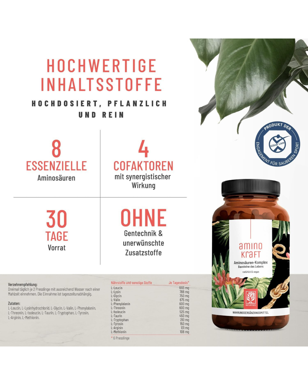 Naturtreu Aminokraft Aminosäuren-Komplex, 180 Kapseln Produktdetails