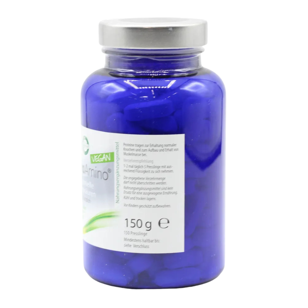 Ein ausgewogenes Verhältnis aller acht essentiellen Aminosäuren in reiner, pflanzlicher Form – entwickelt nach dem MAP-Konzept von Prof. Lucá-Moretti. Die Presslinge liefern die Bausteine, die der Körper nicht selbst bilden kann, und stellen sie in einer Form bereit, die besonders effizient genutzt werden kann.
