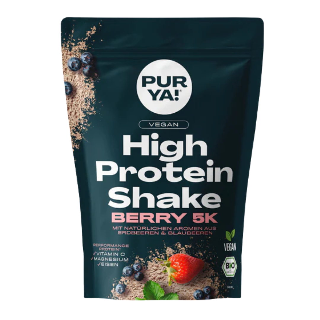 Der Bio High Protein Shake BERRY 5K von PURYA! kombiniert fünf pflanzliche Proteinquellen mit einem fruchtigen Beerengeschmack. Die Zutaten stammen aus biologischer Landwirtschaft und machen den Shake zu einer vielseitigen Ergänzung für den Tag, ob als Shake nach dem Training, in Smoothies, Bowls oder zum Backen.