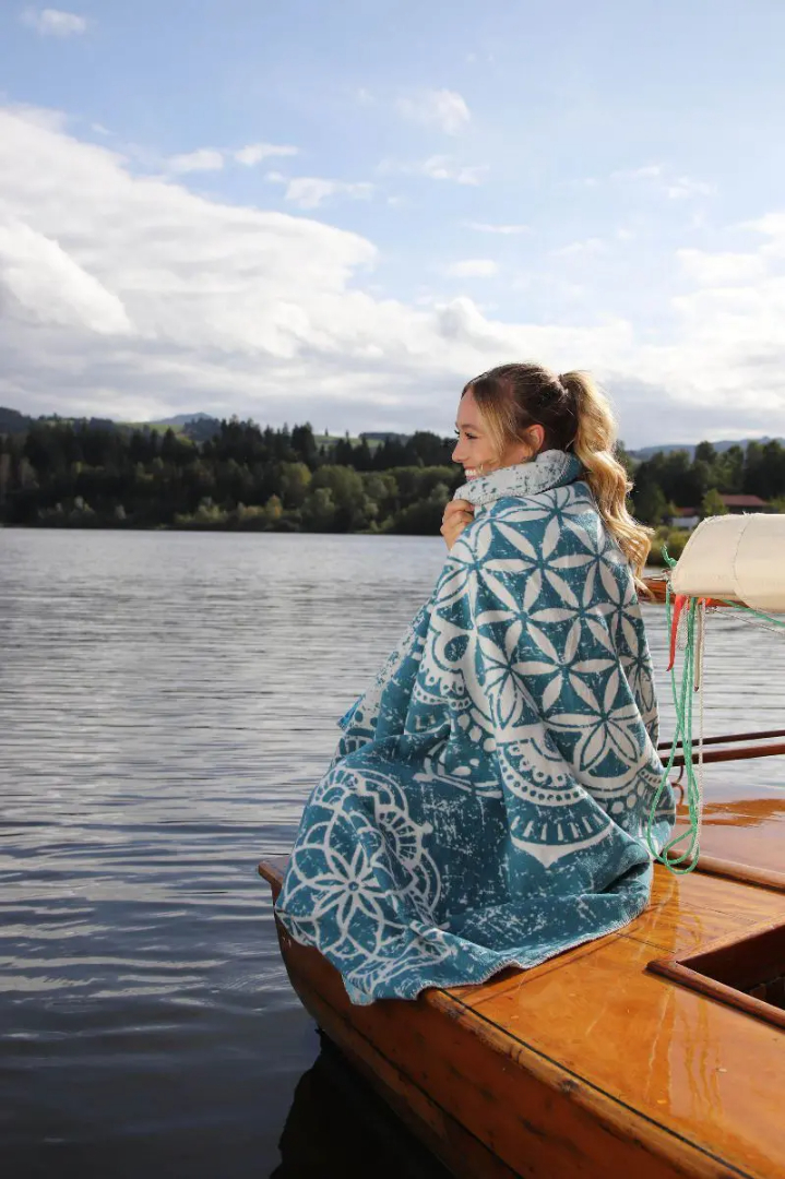 Spirit of Om Bio-Kuscheldecke in Smaragd mit Blume des Lebens