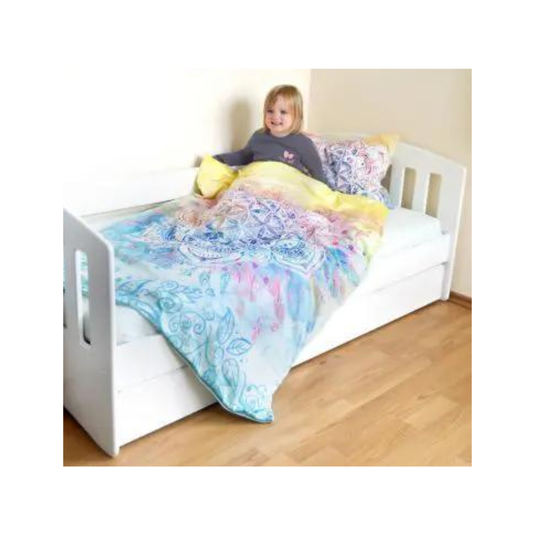 Das farbenfrohe Design der Bettwäsche 'Beauty Dream' mit der 'Blume des Lebens' bringt Freude und Harmonie ins Kinderzimmer. Die lebendigen Farben und das liebevoll gestaltete Muster fördern ein Gefühl der Geborgenheit und machen das Bett zu einem Wohlfühlort. Die 'Blume des Lebens' steht für Harmonie und Schutz, ideal für die Nachtruhe der Kleinsten.