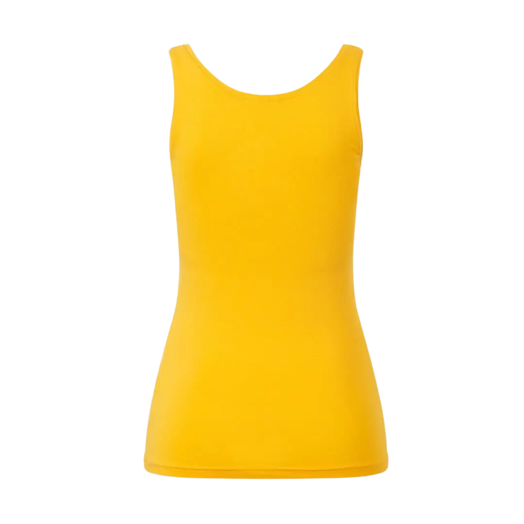 Ein zeitloser Klassiker in neuer Qualität: Dieses Top verbindet einen fein abgestimmten Materialmix mit spirituell inspirierten Details und setzt so neue Maßstäbe für Tragekomfort und Design. Das leuchtende Sonnenblumengelb sorgt für positive Akzente – ob als Einzelstück im Sommer oder als Unterzieher das ganze Jahr über.