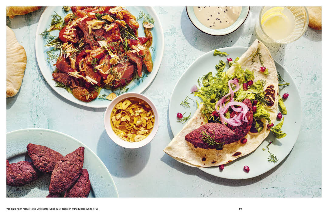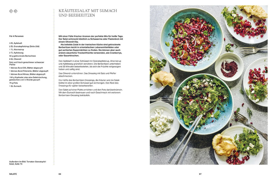 Neben den bekannten Speisen wartet das Buch mit kreativen Neuschöpfungen auf, die selbst erfahrene Gaumen überraschen werden. Pastinaken-Beignets mit einem Hauch von Kreuzkümmel, Kräutertofu verfeinert mit schwarzen Limetten, oder ein erfrischender Kräutersalat mit Sumach und Berberitzen – jede Rezeptur ist eine Hommage an die traditionelle und gleichzeitig innovative Esskultur der Levante.